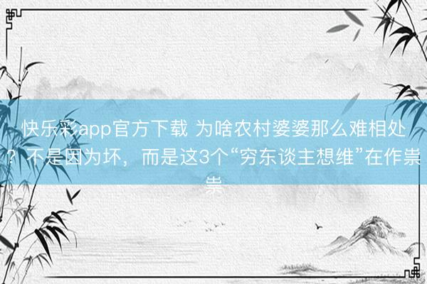 快乐彩app官方下载 为啥农村婆婆那么难相处?不是因为坏,而